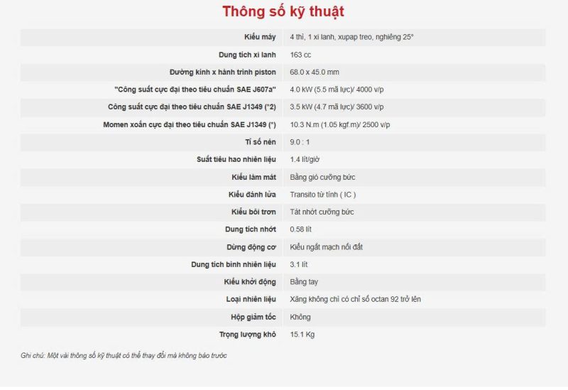 • Hãng sản xuất : Honda